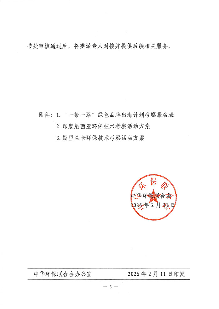 为深入贯彻绿色发展理念,服务“一带一路”倡议深入实施,推动我国环保与新能源企业加速“走出去”进程,深化与沿线国家在生态环境治理、绿色产业培育及可持续发展领域的深度务实合作,经研究,拟于2026年4月中下旬组织赴印度尼西亚考察团、2026年6月下旬组织赴斯里兰卡考察团,开展专题出国考察与项目对接活动。现将有关事项通知如下:
