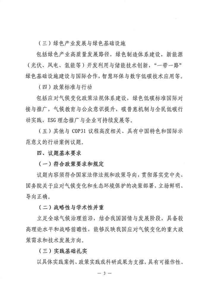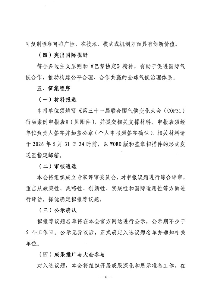 (五)其他与COP31议程高度相关、具有鲜明中国特色和国际示范价值的创新议题。