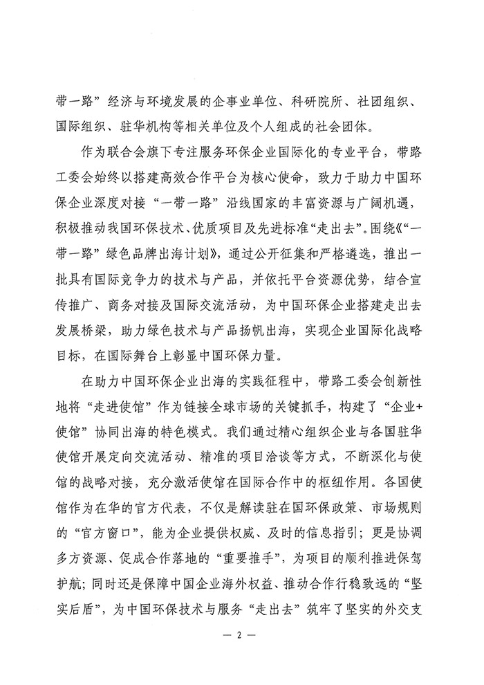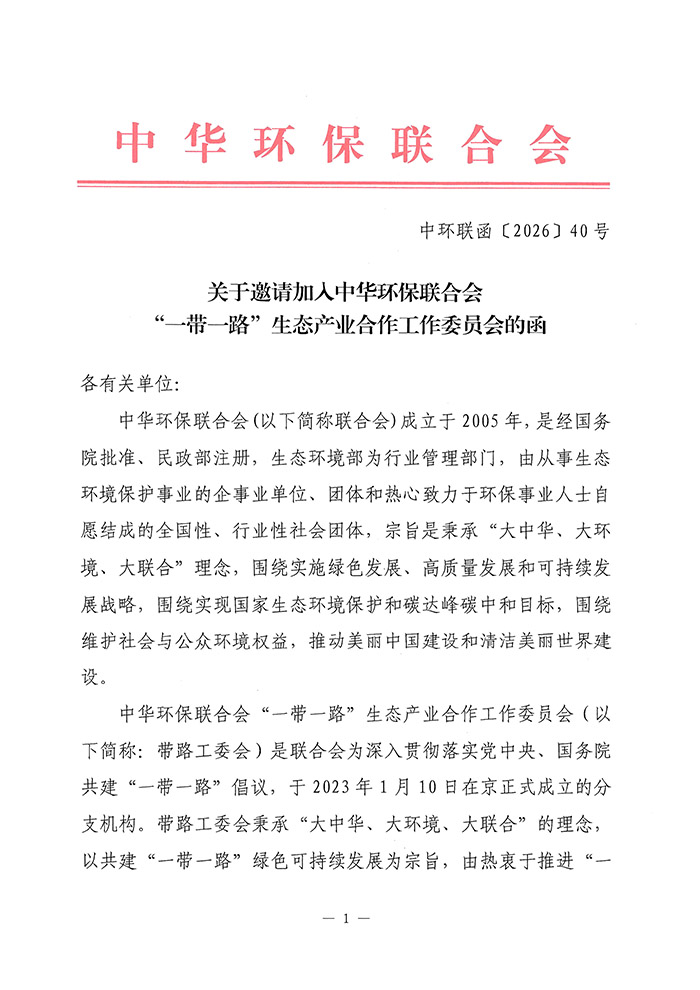 关于邀请加入中华环保联合会“一带一路”生态产业合作工作委员会单位会员的函
