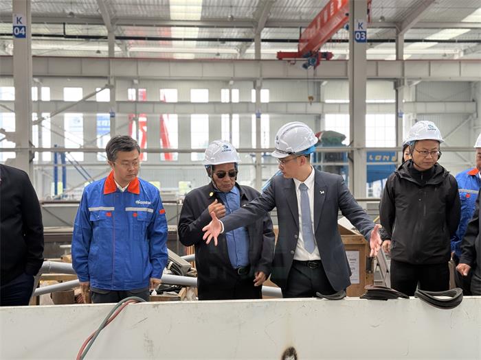 在石祥秘书长以及王朋董事长等人的陪同下,亚历山大·提阿博部长,基里巴斯驻华大使戴维·提阿博阁下一行参观了巨龙公司的生产车间、技术展示中心与装备调试基地。代表团详细了解了环保疏浚装备的制造工艺、技术参数与作业性能,并现场观摩了智能挖泥船、两栖疏浚设备等产品的试运行。