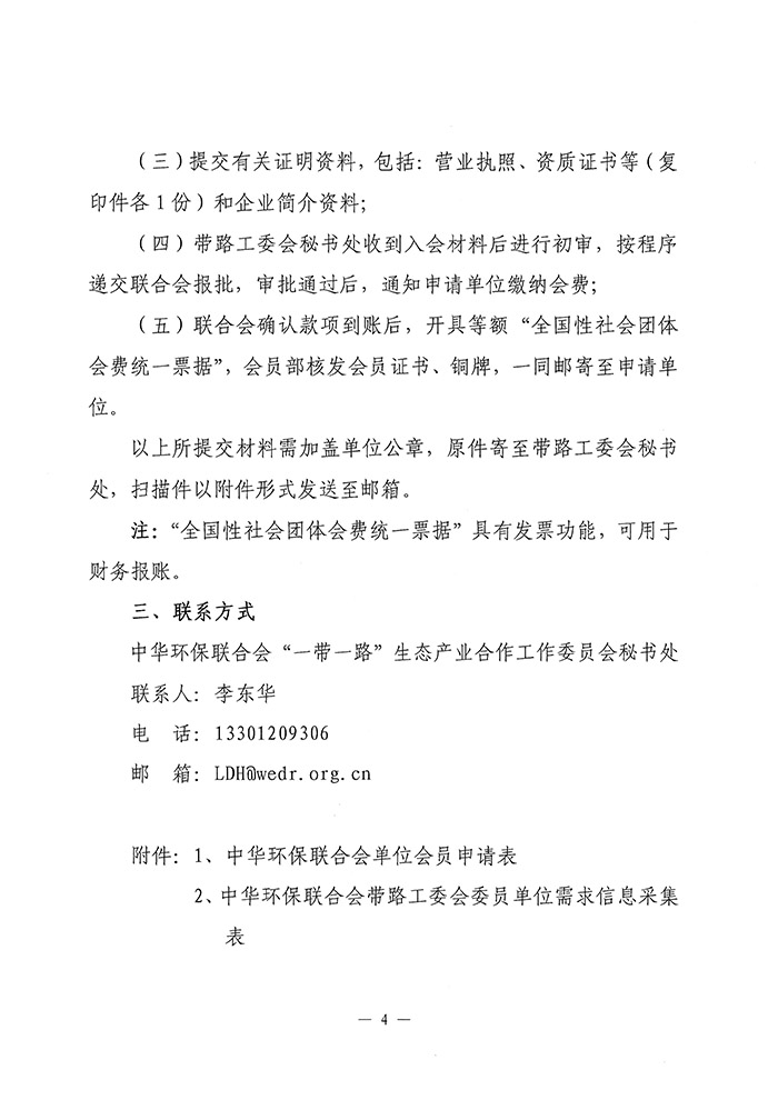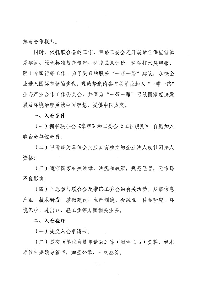 关于邀请加入中华环保联合会“一带一路”生态产业合作工作委员会单位会员的函