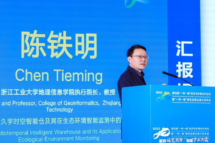 陈铁明在报告中介绍了“久宇时空智能舱”。该平台作为时空大数据智能服务框架,通过集成遥感、规划与语义感知等大模型,为生态环境智能监测提供一体化技术支撑。他表示,该平台可赋能低空无人机监测系统,实现数据采集、环境感知与路径规划的智能化,助力“一带一路”沿线生态环境精准治理与绿色可持续发展。