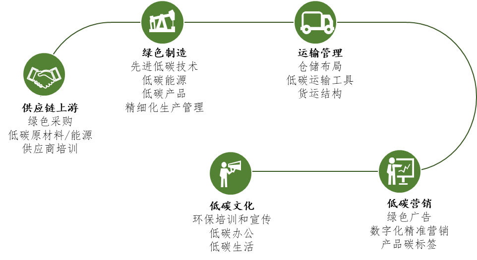 优化供应链网络,减少因不合理的仓储配送中心布局而带来的能源消耗和污染物排放,遴选优质的第三方物流公司,提升产品配送和服务水平,选购低碳交通运输工具,如耗油少的车、电动车、混合动力车、氢能(或氨气)货车等。调整优化货运结构,通过“公转铁”“公转水”调整货运结构使货运需求在更绿色的渠道释放,从而间接减少道路及整体的碳排放。