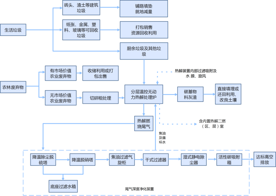 分布式无动力分层温控生活垃圾热解技术装置
